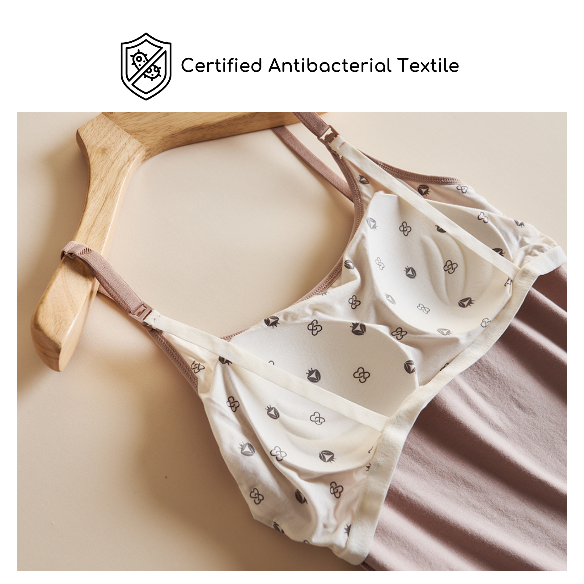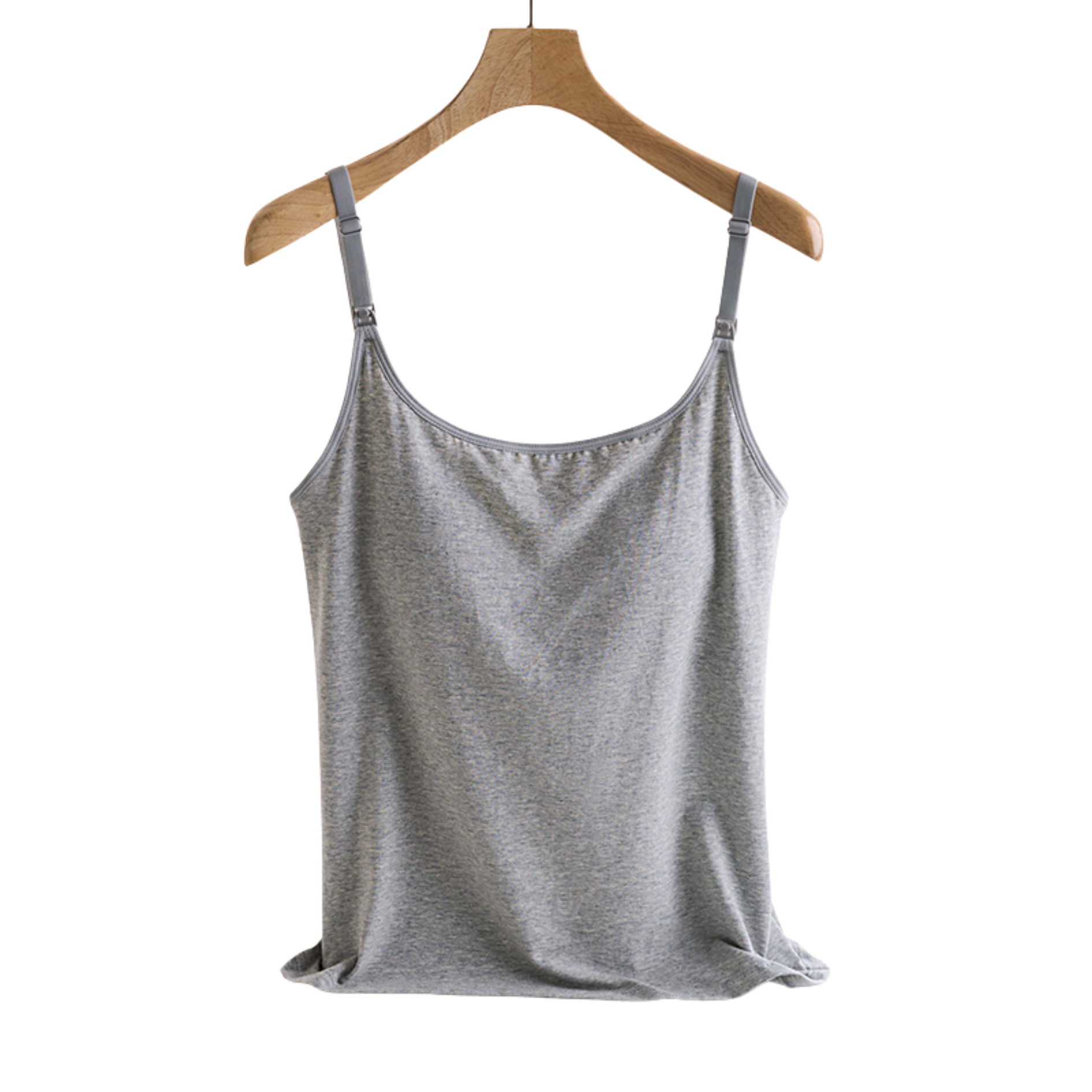Antibacterial Maternity & Nursing Camisole made of 95% cotton, 5% spandex—breathable, stretchable, and perfect from pregnancy to nursing. Features easy nursing access and built-in antibacterial bra padding for comfort anytime.