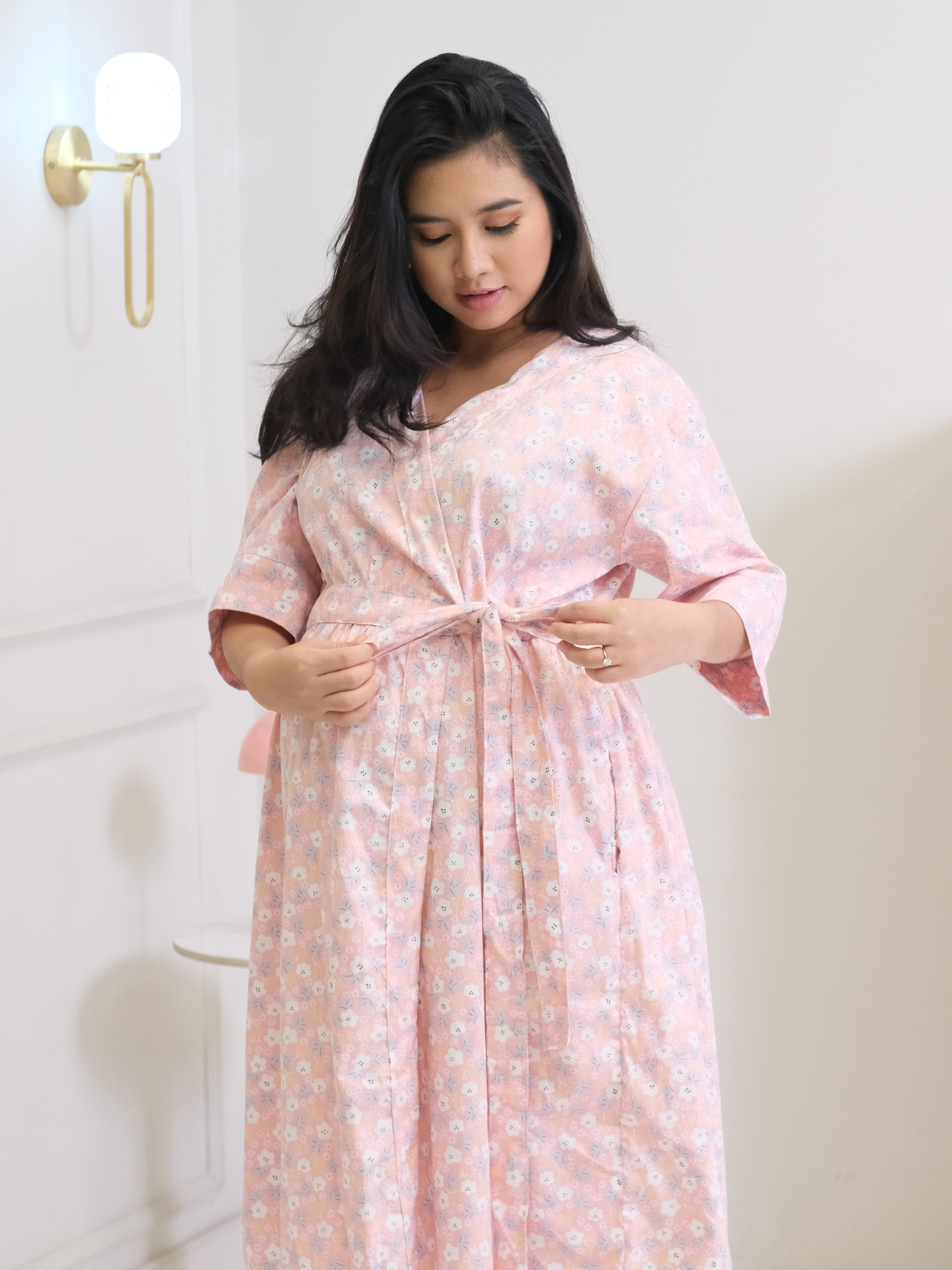 The BellaMom Maternity Hospital Robe – Bloom Collection (available in Pink Bloom, Purple Bloom, and Sage Bloom) is thoughtfully designed to support new moms through their most delicate early days. Made from super soft, breathable 100% cotton, it feels gentle on sensitive postpartum skin while keeping you comfortable all day. Unlike traditional hospital gowns with back openings, this robe features a convenient front-opening design, making breastfeeding and skin-to-skin moments easier without needing to undress completely. Combining function, comfort, and beautiful floral prints, it’s the perfect piece to help you feel cared for as you recover and bond with your baby.